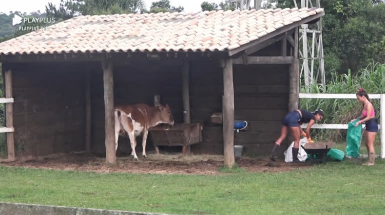 Jakelyne e Stéfani iniciaram as atividades na manhã desta segunda-feira (30) . A modelo está responsável pelo trato da vaca e a digital influencer em dar o auxílio, já que está na baia. Confira! .