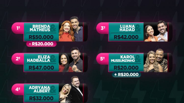 Confira quanto os casais acumularam de dinheiro no décimo ciclo do Power Couple 6