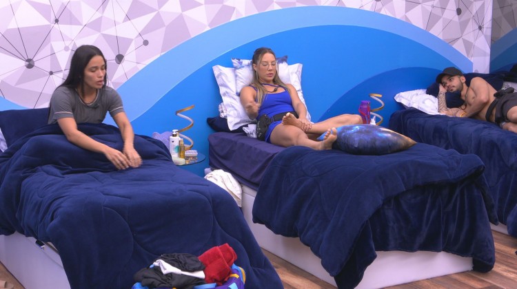 Neste sábado (8), Eva e Renata seguem repercutindo a discussão que tiveram mais cedo com Aline. O trio discutiu após a divisão de estalecas para o mercado da Xepa. No Quarto Fantástico, as amigas conversam com João Pedro e João Gabriel. No papo, a fisioterapeuta afirma que "não quer ficar escutando" a baiana falar.