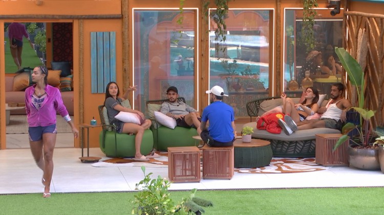 Logo após a discussão entre Eva, Renata e Aline na cozinha da Xepa, a baiana e a fisioterapeuta têm um novo atrito na área externa da casa. Enquanto a bailarina conversa com Vitória Strada, João Gabriel, João Pedro e Maike sobre o atrito, a policial militar chega ao local.