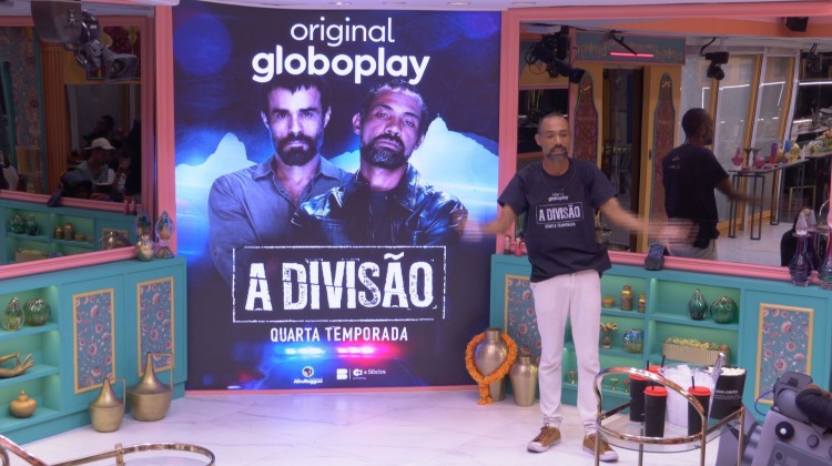 Os participantes do BBB 25 são surpreendidos pelo ator Sílvio Guindane na sala da casa mais vigiada do Brasil, na tarde deste domingo (9). Com baldes de pipoca e refrigerantes, o ator anuncia que eles irão assistir a nova temporada de "A Divisão", série original do Globoplay.