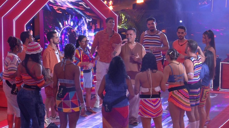 Depois, ele coloca os brothers para testarem o 'cardio' com uma coreografia mais animada. "Agora, vem a parte que mais gosto, que a gente tem que fazer tipo aqueles 'aulão' de dança, que a galera abaixa, coloca a mão para cima, para o lado. Vou fazer isso para sentir se a galera do BBB está no pique!", desafia o cantor.