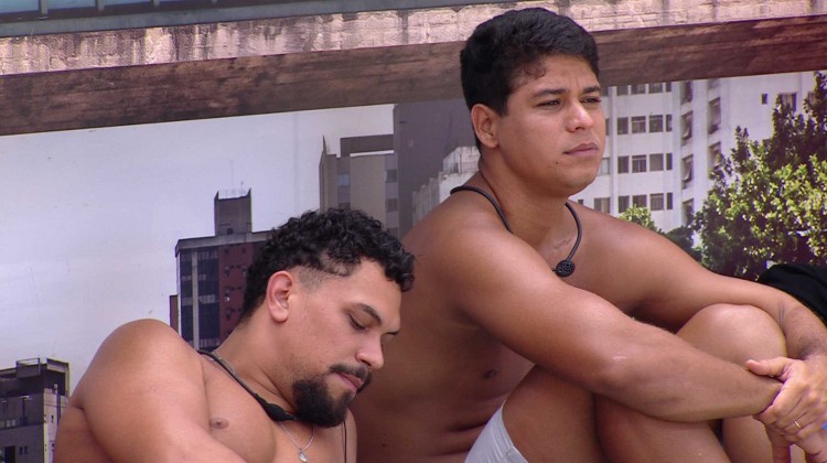 Cumprindo a consequência do Pegar ou Guardar, Guilherme e Vinícius estão na área externa do 25 e conversam sobre a relação com Thamiris no jogo. A carioca impôs a consequência para os dois, em troca dos R$60 mil da dinâmica.