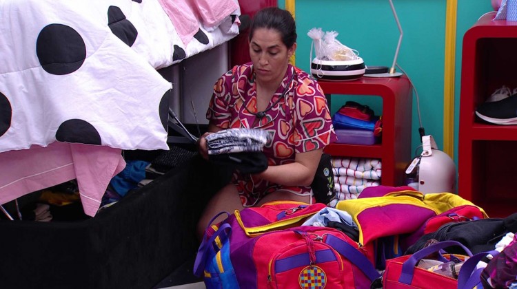 "Já não era sem tempo", afirma a dona de casa, enquanto observa a sister arrumar suas roupas no baú de uma das camas.