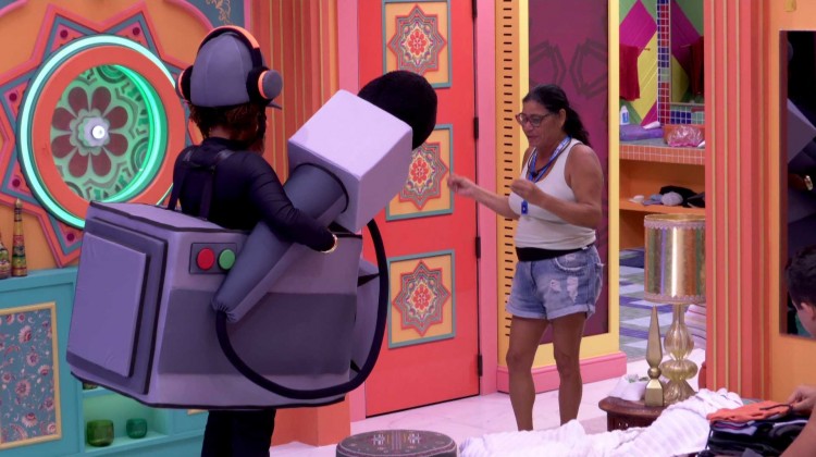Tocado o sinal do Plantão, é mais uma hora de Thamiris cumprir seu Castigo do Monstro. A carioca veste sua fantasia de câmera com um microfone e vê, no telão, o aviso para a sister entrevistar quem quem ela vê como a pessoa mais oportunista da casa